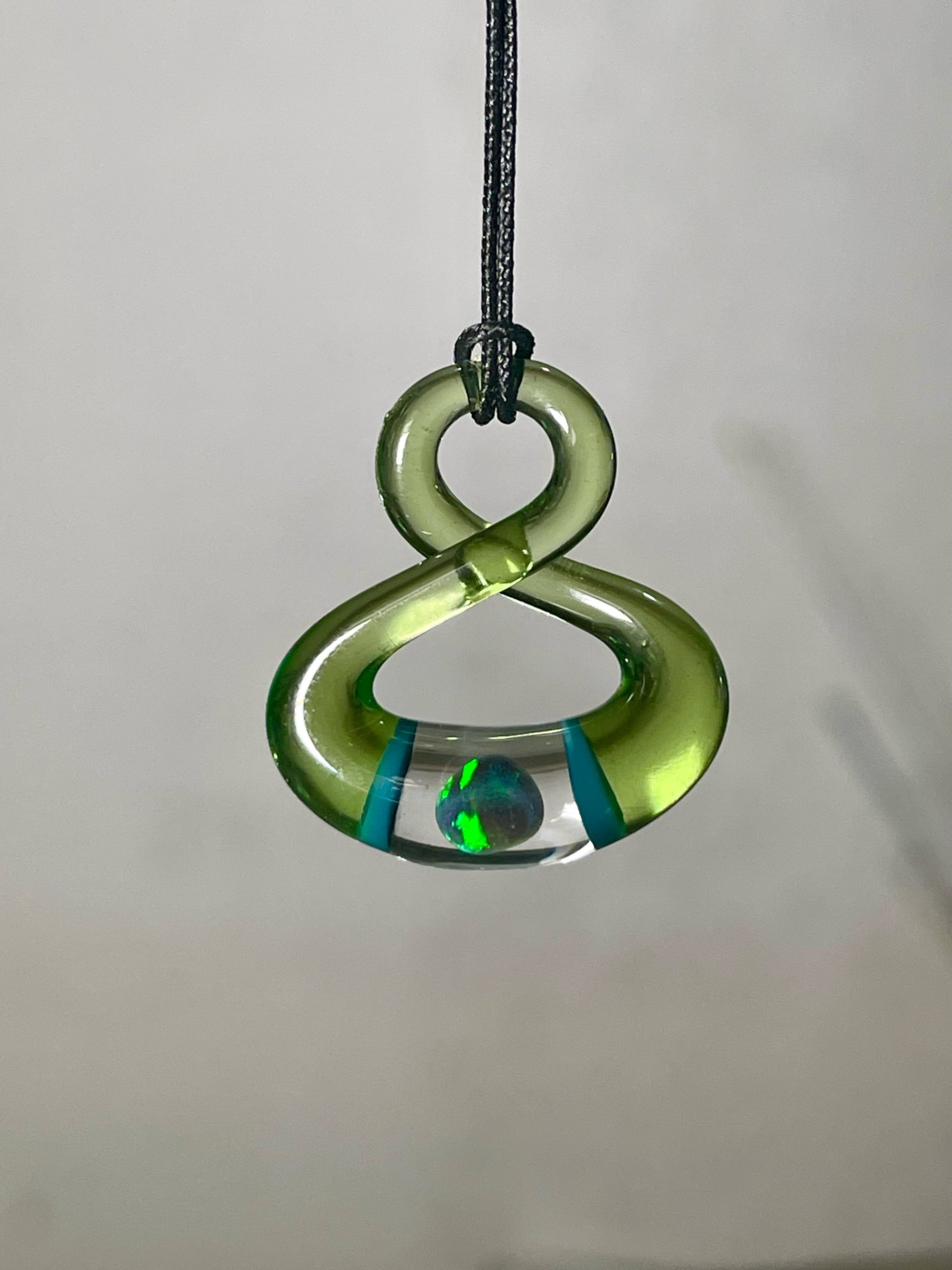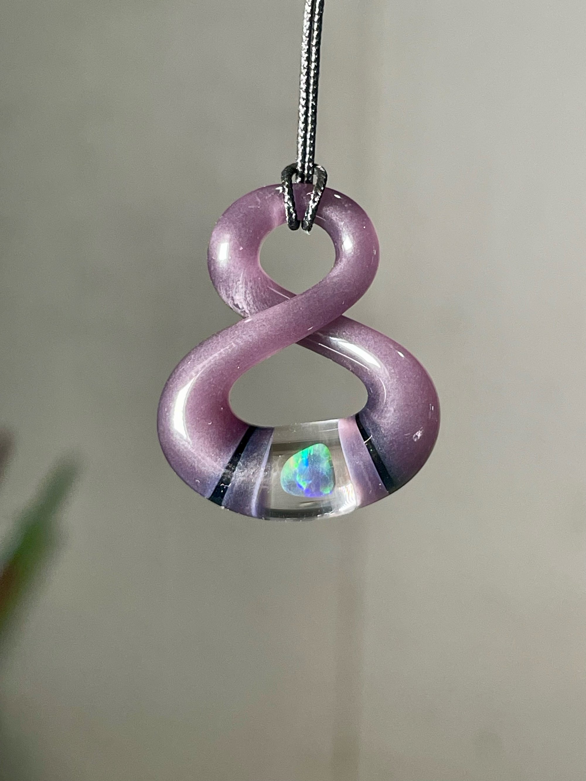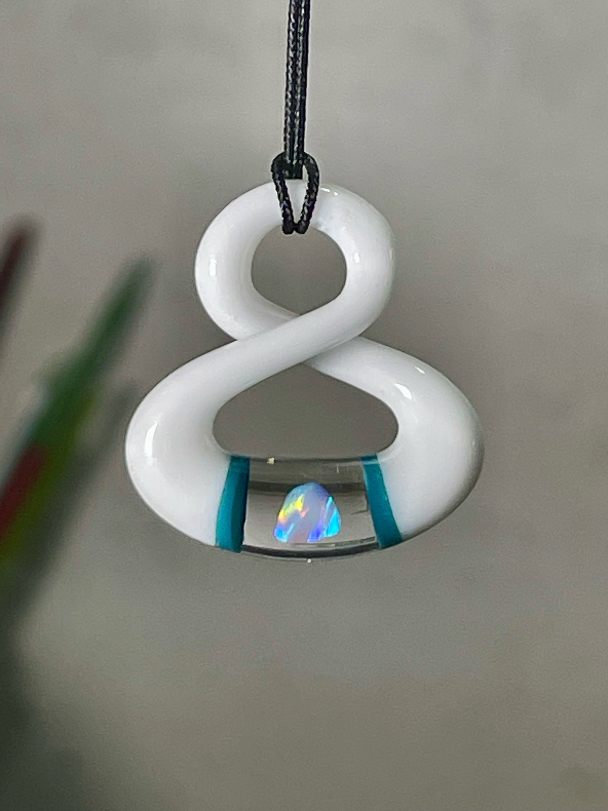 Smallest infinity pendants in my series, these are about 1" tall and have gilson opals. Custom colors always available!
